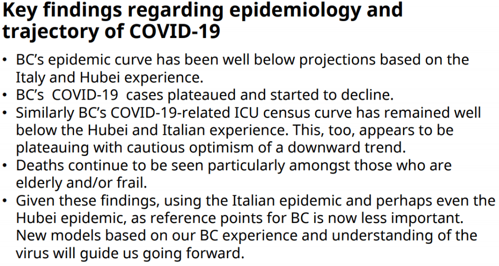 BC has outperformed our best projections for how the infection could have spread in BC. Going forward our models will be based on our own experiences, and not those of other countries and regions.