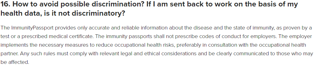 - Threats to public health; Immunity passports could create perverse incentives. If access to certain social and economic liberties is given only to people who have recovered from COVID-19, then immunity passports could incentivize healthy, non-immune individuals to wilfully seek out infection putting themselves and others at risk.