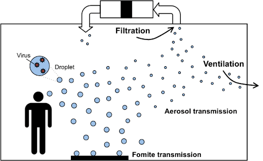 “Reports of outbreaks in settings with poor ventilation suggest that infectious aerosols were suspended in the air and that people inhaled the virus. These settings have included a choir practice, fitness classes, and restaurants. Transmission in these settings may have been facilitated by certain environmental conditions, such as re-circulated air.”