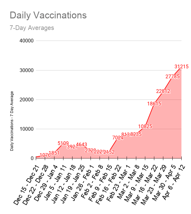 It’s hard to believe that 2 months ago we averaged ~2200 vaccinations a day, and now we’re doing more than 30,000 a day!