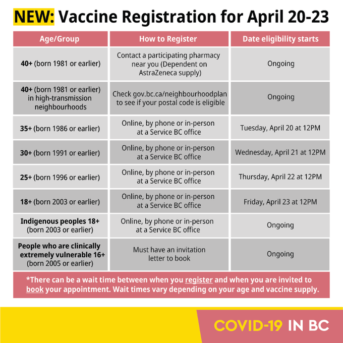 Additionally, the age range for getting the AstraZeneca vaccine has been expanded so anyone 40 years or older may now register with a local pharmacy to get their shot right away!