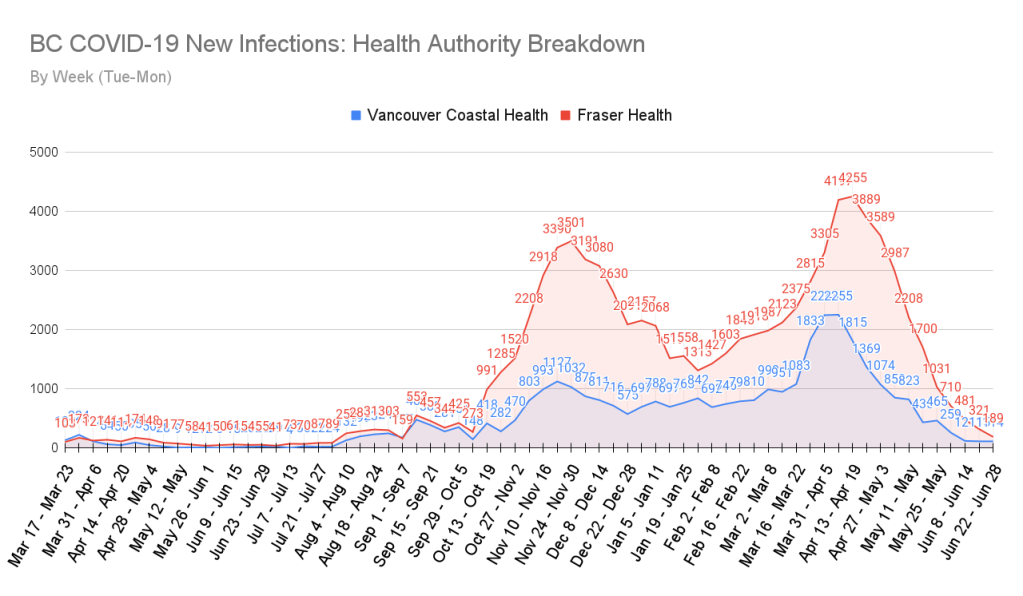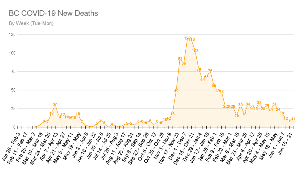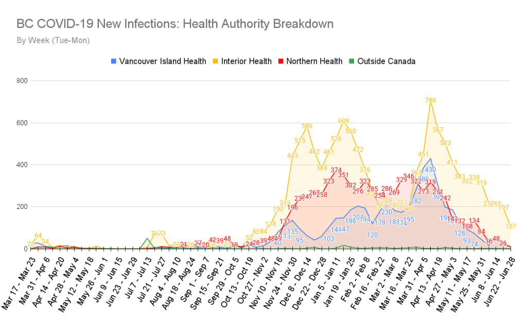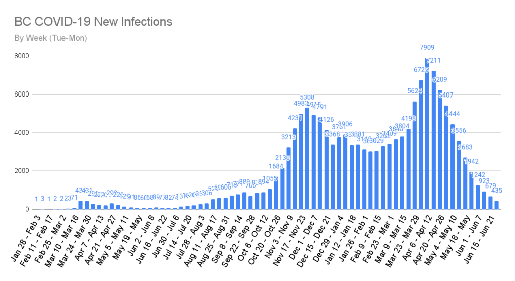 – Vaccinations -> Very Good! (69% of all people in BC have at least 1 dose, 25% have 2 doses)
