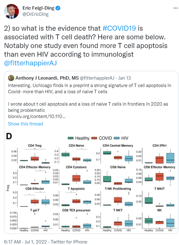The above screen shots are taken from the Twitter account of Dr. Eric Feigl-Ding, an epidemiologist that has been raising awareness of the long-term immuno-consequences of allowing COVID-19 to spread freely. Here is a link to the thread on Twitter, where you can also find links to all the referenced studies.