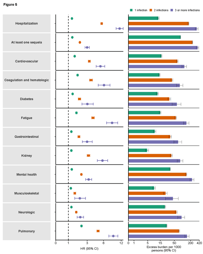 As you can see from the above chart, the hazard ratios increase significantly with each new infection. It is important to remember that this is still just one study, and again, it is not yet peer-reviewed. However, one probably shouldn’t need a lot of convincing that catching COVID-19 multiple times is a bad idea.
