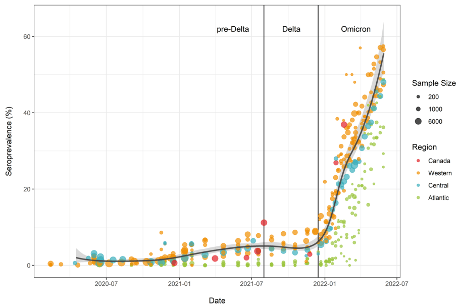 Unfortunately, Omicron has been a pandemic game changer. Since Omicron came to Canada late last year, according to seropositivity testing on a national level, the number of Canadians who have caught COVID-19 jumped from 7% to over 50% between December 2021 and May 2022, and this is especially true of the Western provinces such as British Columbia and Alberta.